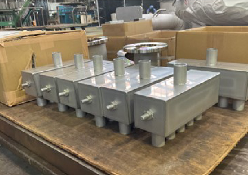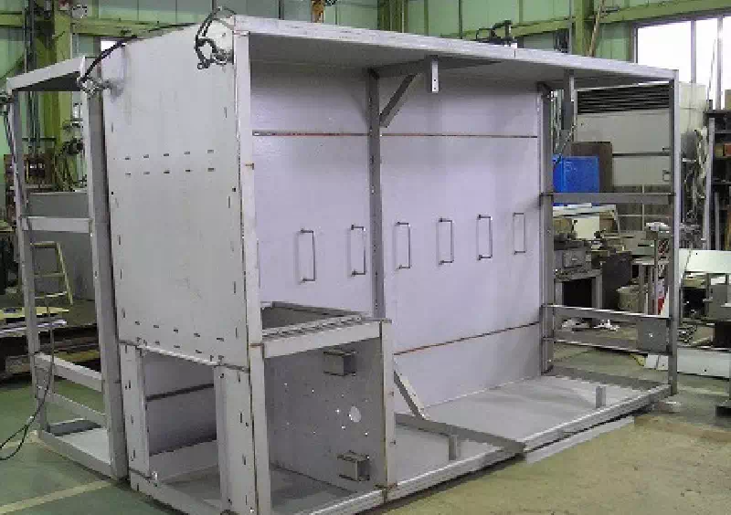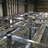 水処理プラント向けで、汚水処理時のゴミを分離するための装置の角槽になります。材料は全て当社工場の常備在庫のため、板レーザー加工・型鋼・パイプのバンドソー切断、曲げ加工等、迅速な対応が可能です。製品の内容を検討した上で、実績・技術・設備などを考慮し当社の協力工場を選定し、製作を進めます。当社では色々な分野に特化した技術を持ち合わせた協力工場が複数ございます。 -