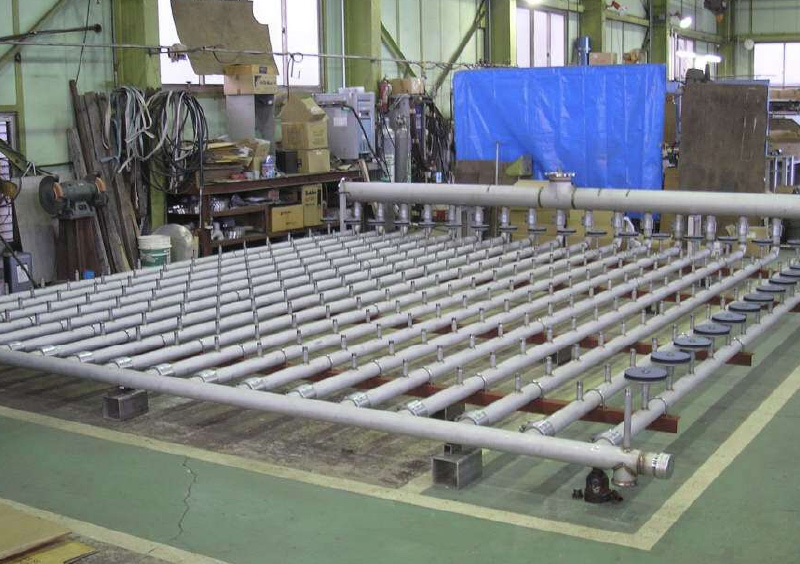 この装置はディフューザーと呼ばれる気泡を出す製品を配管に取付ける構造になっており1装置270個と非常に規模の大きいものです。