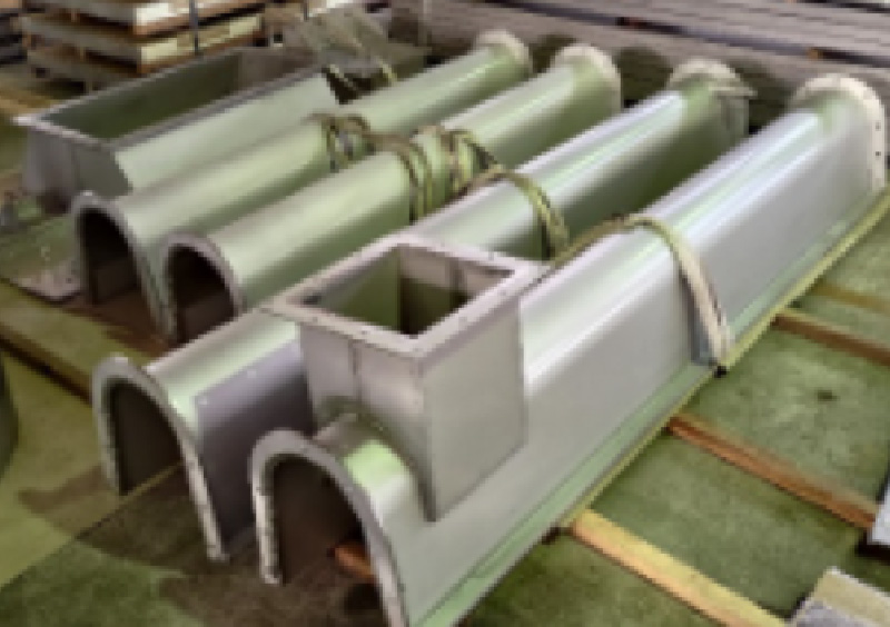 ※タイプ①ファイバーレーザーで穴あけ切断を行いベンダーにてR曲げを行いました。R形状から外側に開きながら立ち上がり、通常のロール曲げでは難しいため、ベンダーで点押しにして60回ほどプレスして曲げました。この仕事は完成形の組立図から材料を当社でバラシ、必要な材料を手配しております。また展開作業もCADで展開し作成しております。ケーシング内部のライナー材は二相鋼ステンレス329J4Lです。329J4Lは非常に硬いためロール曲げでRにしますが、ロール曲げでも非常に難しい加工なのでノウハウが必要となります。 -