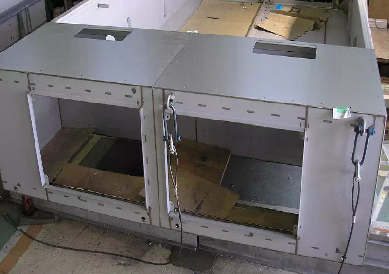 これは、お客様の社内加工だけでは納期までの完成が厳しい製品の一部数量をお手伝いした事例です。本体は板厚3mmの2B材、補強材には同じく板厚3mmの2B材をアングル曲げした物を数種類使用した脱脂タンクで、図面品2台、図面勝手反対品1台の計3台を受注製作しました。お客様との打合せに加工業者も同席し、図面には記されていない溶接方法や合わせ部分、実際の仕上げについて細部まで打合せをしました。勝手反対品の製作では本図面をコピー機の反転プリント機能を使用しコピーして加工がスムーズに進むよう工夫しました。 -
