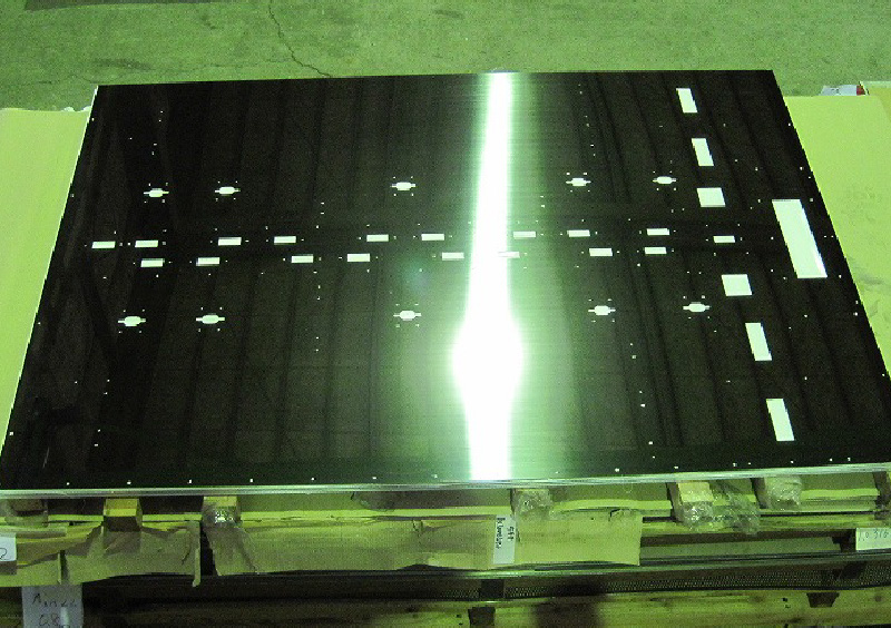 装置用鏡面カバーの穴あけは、ファイバーレーザー加工機を用いて、開口部のバリが出ることなく、高い品質の仕上がりになります。同鏡面カバーは定尺品だと非常に歩留りが悪くなりますが、メーカーに特注サイズで手配をかける事で、歩留り改善によりコストの低減を図りました。ステンレス加工品の材料については、仕入れの段階から適正サイズを選定し、メーカーとの交渉を含め調達からのコストダウンを図ることを得意としております。